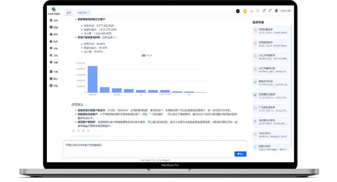 3. 客户洞察:深度解析客户购买偏好、消费频次及复购情况,自动生成客户精准营销建议,提升复购率与转化率。