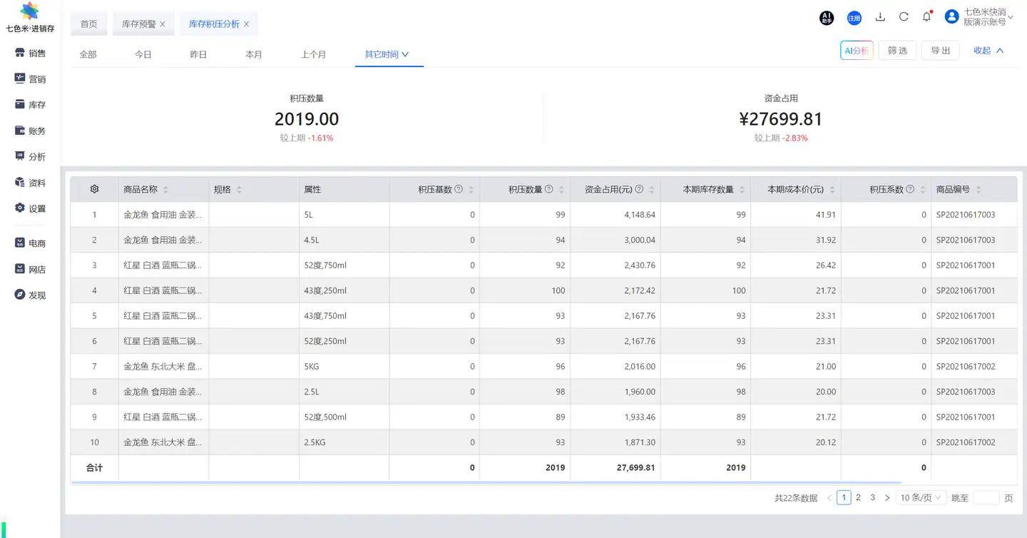 库存管理是快消企业运营的关键环节。七色米快消版具备强大的库存管理功能,通过实时库存跟踪,企业可以随时了解库存数量、库存位置等信息,实现库存的精准控制。系统提供库存预警功能,当库存数量低于设定的安全库存时,会自动提醒企业进行补货,避免缺货风险;当库存数量过高时,也能及时发出警报,帮助企业合理调整采购计划,减少库存积压。软件还支持库存盘点、库存调拨等操作,确保库存数据的准确性 。借助这些功能,企业可以对库存进行灵活调度,避免资金的无效占用。