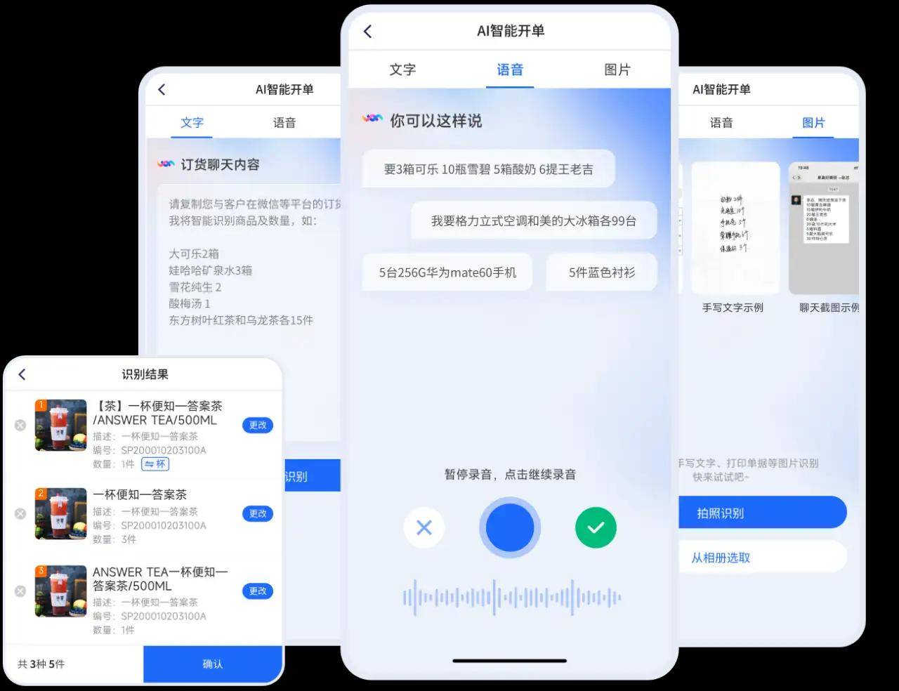 快消行业订单量大、信息繁杂,开单效率至关重要。七色米快消版的 AI 智能开单功能,为企业带来了极大的便利,它提供文本、语音、图片三种开单方式。文本开单时,只需复制与客户的订货聊天内容,就能快速识别商品名称及数量;语音开单更加便捷,简单说出商品名称和数量,AI 助手即刻完成商品选择;图片开单则直接拍照或者上传图片,AI 助手自动识别并选择商品 。这一功能就像一位不知疲倦的开单小助手,大幅提升开单效率,让企业能够快速响应客户需求,在激烈的市场竞争中抢占先机。