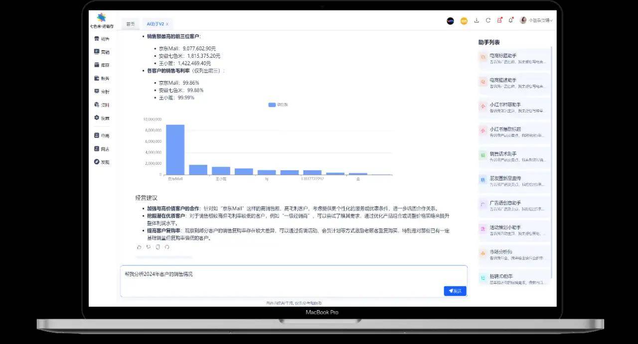 数据是企业决策的重要依据。七色米快消版提供直观的数据看板,将企业的关键经营数据,如销售额、利润、库存周转率、客户分布等,以可视化的方式呈现出来,让企业管理者一目了然。通过智能分析功能,软件还能对销售数据、库存数据、客户数据等进行深入挖掘,为企业提供精准的决策建议,帮助企业优化产品结构、拓展销售渠道、提升客户服务水平 。它就像是企业的智慧大脑,从海量的数据中提炼出有价值的信息,为企业的发展指明方向。